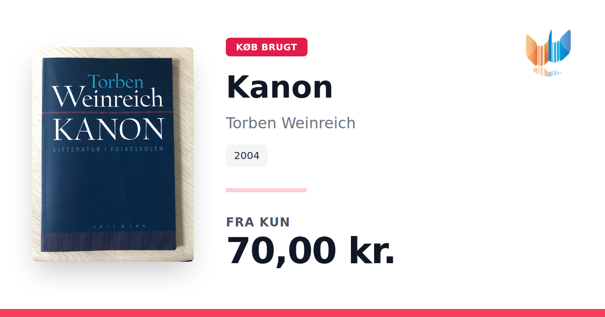 Lige nu kan du købe "Kanon" af Torben Weinreich til kun 70,00 kr. Bogen du ser her er brugt, og i god stand. Vi har i øjeblikket kun et enkelt eksemplar til salg af "Kanon", så slå til mens du kan!