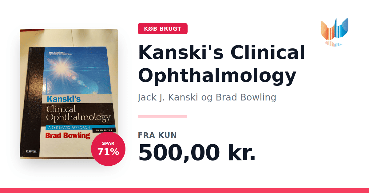 Lige nu kan du købe "Kanski's Clinical Ophthalmology" af Jack J. Kanski og Brad Bowling til kun 500,00 kr. Du sparer hele 71% af nyprisen! Bogen du ser her er brugt, og i god stand. Vi har i øjeblikket kun et enkelt eksemplar til salg af "Kanski's Clinical Ophthalmology", så slå til mens du kan!
