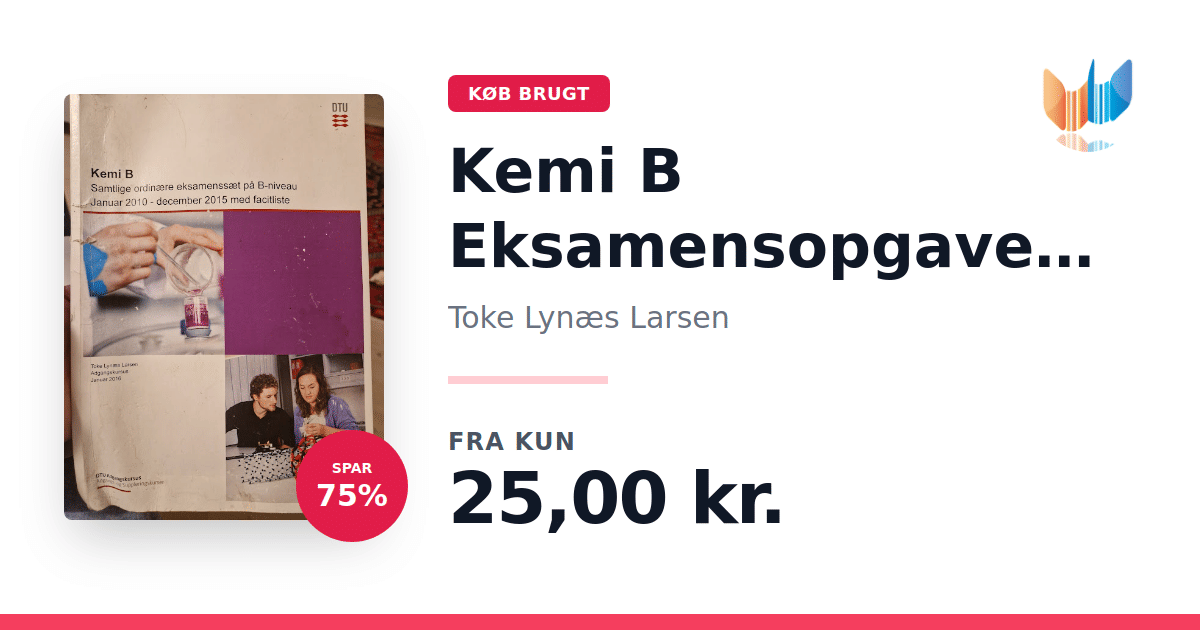 Lige nu kan du købe "Kemi B Eksamensopgaver Adgangskursus E2016" af Toke Lynæs Larsen til kun 25,00 kr. Du sparer hele 75% af nyprisen! Bogen du ser her er brugt, og i slidt stand. Vi har i øjeblikket kun et enkelt eksemplar til salg af "Kemi B Eksamensopgaver Adgangskursus E2016", så slå til mens du kan!