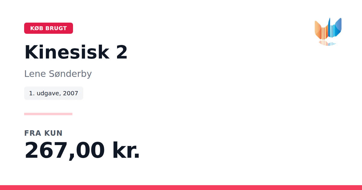 Lige nu kan du købe "Kinesisk 2" af Lene Sønderby til kun 267,00 kr. Du sparer hele 28% af nyprisen! Bogen du ser her er brugt, og i perfekt stand. Vi har i øjeblikket kun et enkelt eksemplar til salg af "Kinesisk 2", så slå til mens du kan!