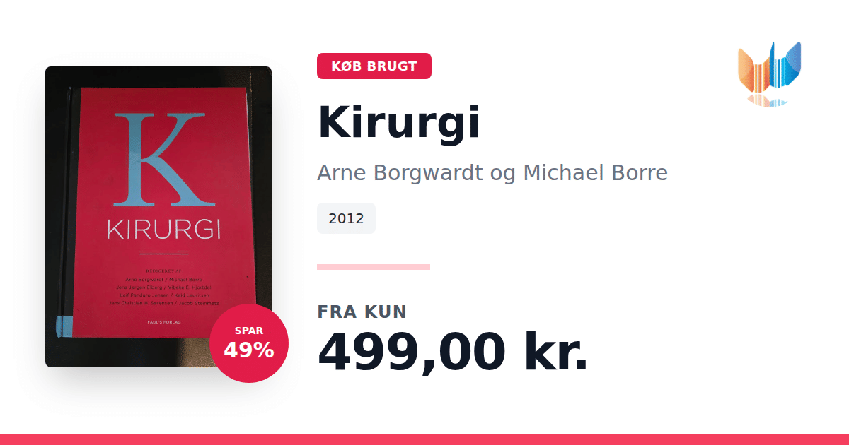 Lige nu kan du købe "Kirurgi" af Arne Borgwardt og Michael Borre til kun 499,00 kr. Du sparer hele 49% af nyprisen! Bogen du ser her er brugt, og i god stand. Vi har i øjeblikket kun et enkelt eksemplar til salg af "Kirurgi", så slå til mens du kan!