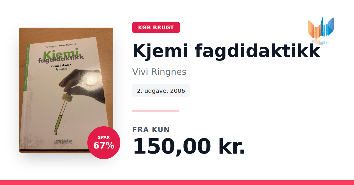 Lige nu kan du købe "Kjemi fagdidaktikk" af Vivi Ringnes til kun 150,00 kr. Du sparer hele 67% af nyprisen! Bogen du ser her er brugt, og i slidt stand. Vi har i øjeblikket kun et enkelt eksemplar til salg af "Kjemi fagdidaktikk", så slå til mens du kan!