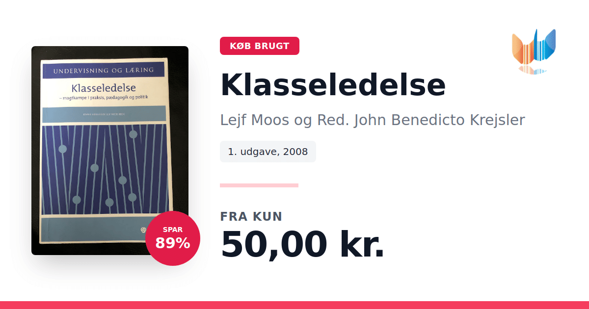 Lige nu kan du købe "Klasseledelse" af Lejf Moos og Red. John Benedicto Krejsler til kun 50,00 kr. Du sparer hele 89% af nyprisen! Bogen du ser her er brugt, og i god stand. Vi har i øjeblikket 3 eksemplarer til salg af "Klasseledelse", så husk at se de forskellige udgaver.