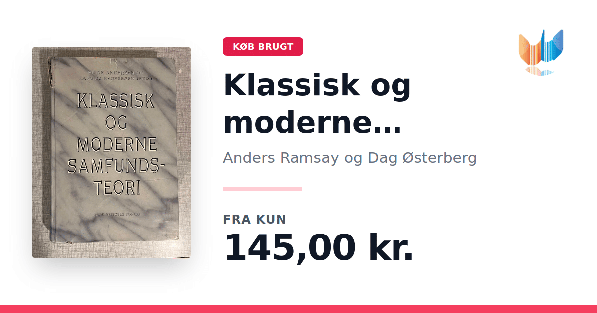 "Klassisk og moderne samfundsteori" byder på en gennemgribende introduktion til samfundsteorier, hvor de klassiske ideer møder moderne tanker. Bogen, udgivet i 1996, tilbyder læseren et solidt teoretisk fundament med udsyn til de centrale strømninger i samfundsvidenskaben. Med sine 693 sider præsenteres teorierne både i deres historiske kontekst og i en tidssvarende fortolkning. Forfatterne Heine Andersen og Lars Bo Kaspersen giver med deres systematiske og analytiske tilgang et overblik, der engagerer både studerende og fagfolk i de samfundsteoretiske diskurser.