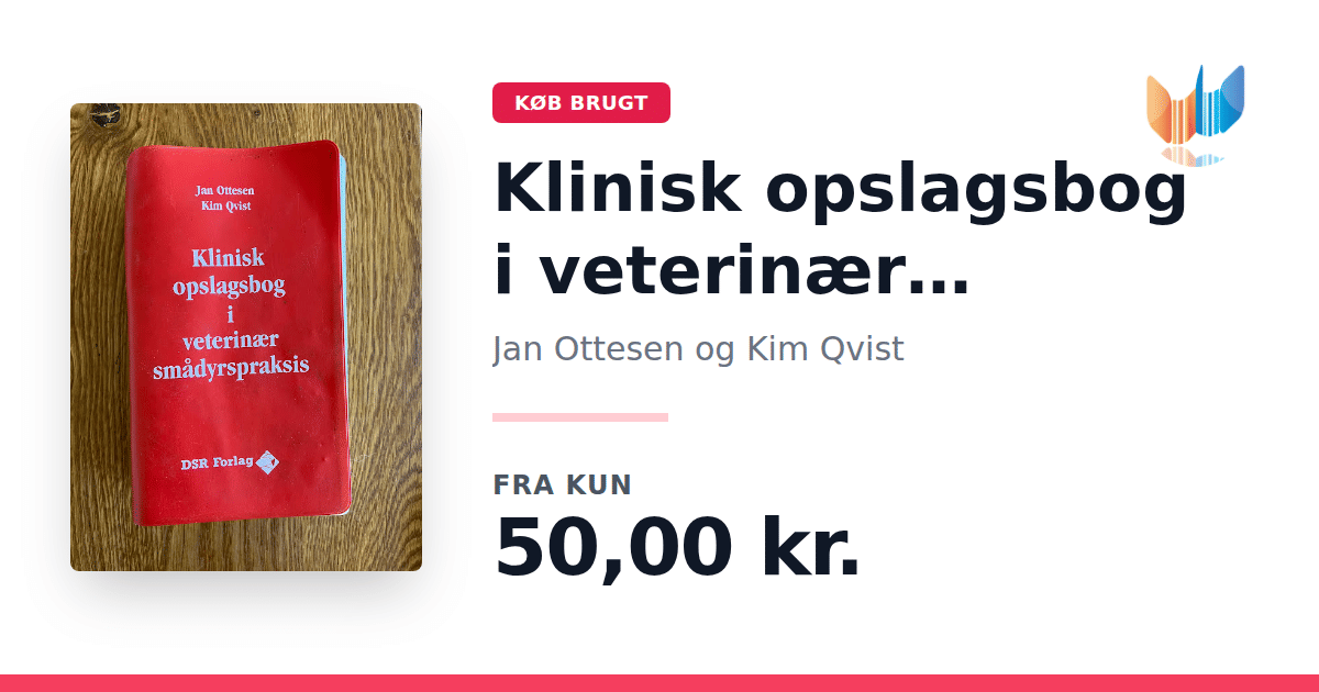 Lige nu kan du købe "Klinisk opslagsbog i veterinær smådyrspraksis" af Jan Ottesen og Kim Qvist til kun 50,00 kr. Bogen du ser her er brugt, og i slidt stand. Vi har i øjeblikket kun et enkelt eksemplar til salg af "Klinisk opslagsbog i veterinær smådyrspraksis", så slå til mens du kan!