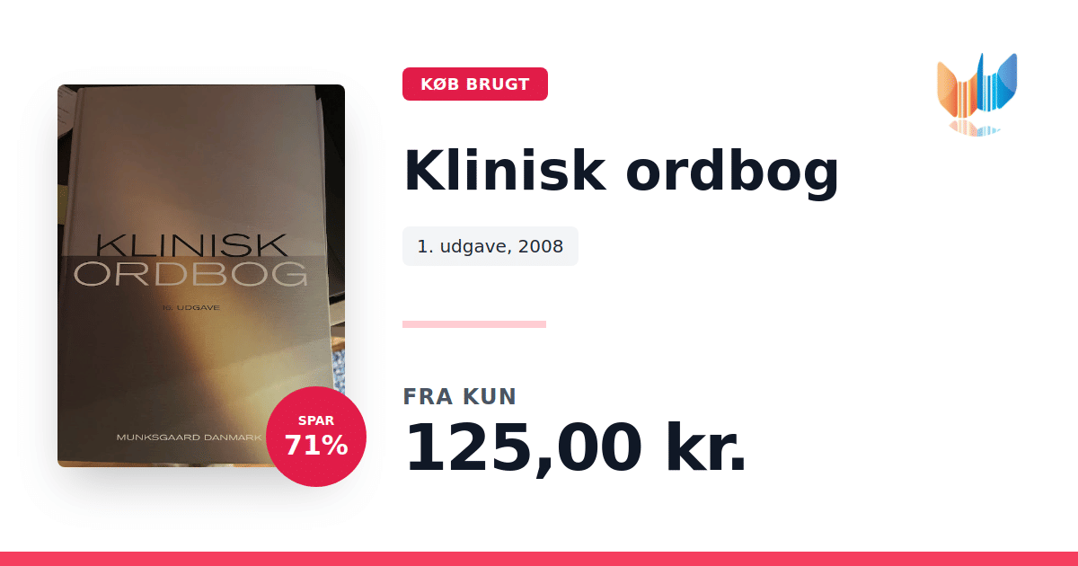 Lige nu kan du købe "Klinisk ordbog" til kun 125,00 kr. Du sparer hele 71% af nyprisen! Bogen du ser her er brugt, og i perfekt stand. Vi har i øjeblikket kun et enkelt eksemplar til salg af "Klinisk ordbog", så slå til mens du kan!
