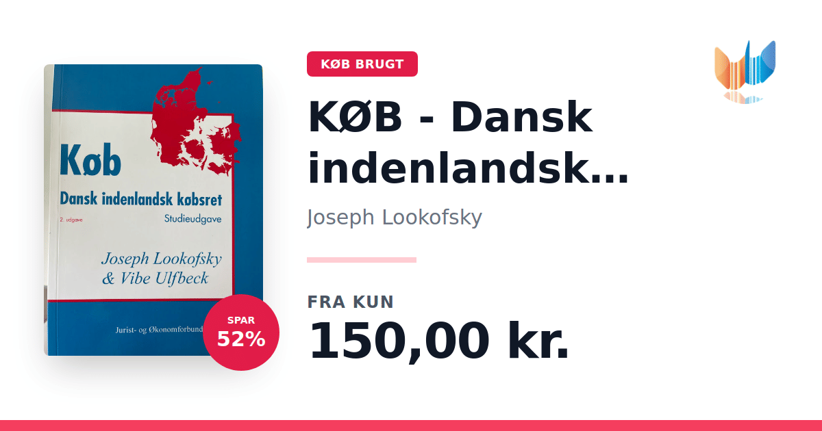Lige nu kan du købe "KØB - Dansk indenlandsk købsret" af Joseph Lookofsky til kun 150,00 kr. Du sparer hele 52% af nyprisen! Bogen du ser her er brugt, og i perfekt stand. Vi har i øjeblikket kun et enkelt eksemplar til salg af "KØB - Dansk indenlandsk købsret", så slå til mens du kan!