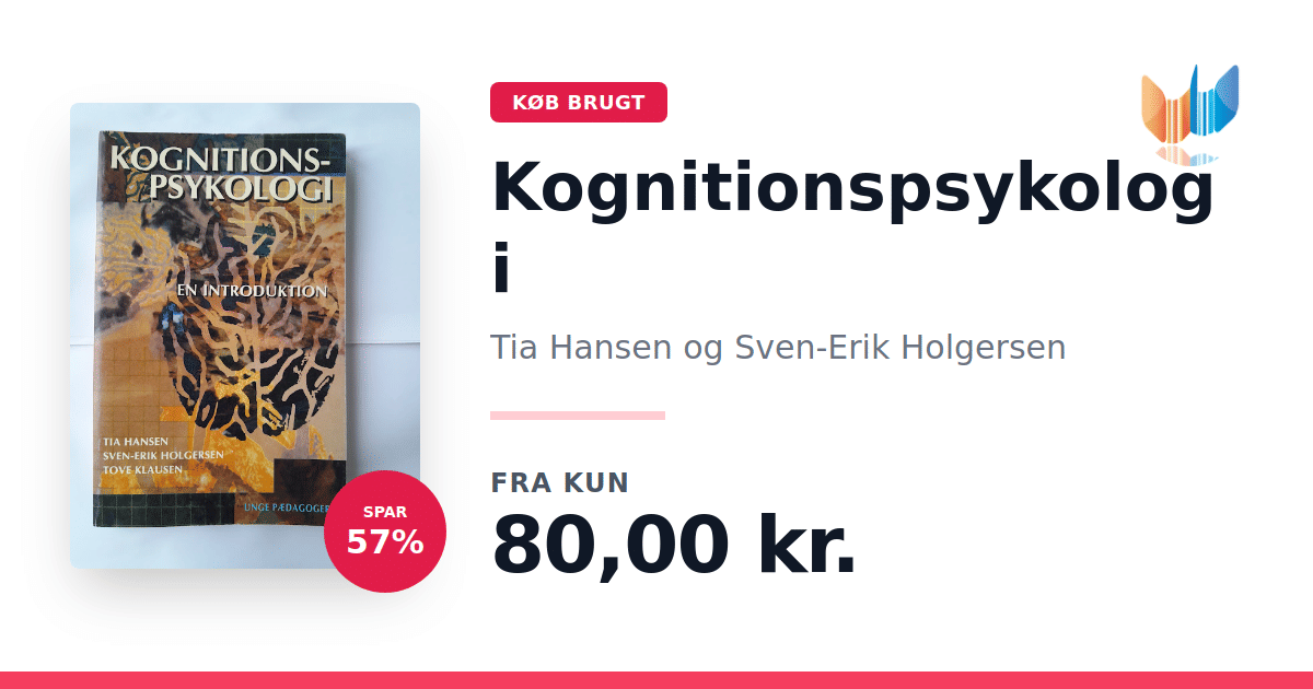 Lige nu kan du købe "Kognitionspsykologi" af Tia Hansen og Sven-Erik Holgersen til kun 80,00 kr. Du sparer hele 57% af nyprisen! Bogen du ser her er brugt, og i god stand. Vi har i øjeblikket kun et enkelt eksemplar til salg af "Kognitionspsykologi", så slå til mens du kan!