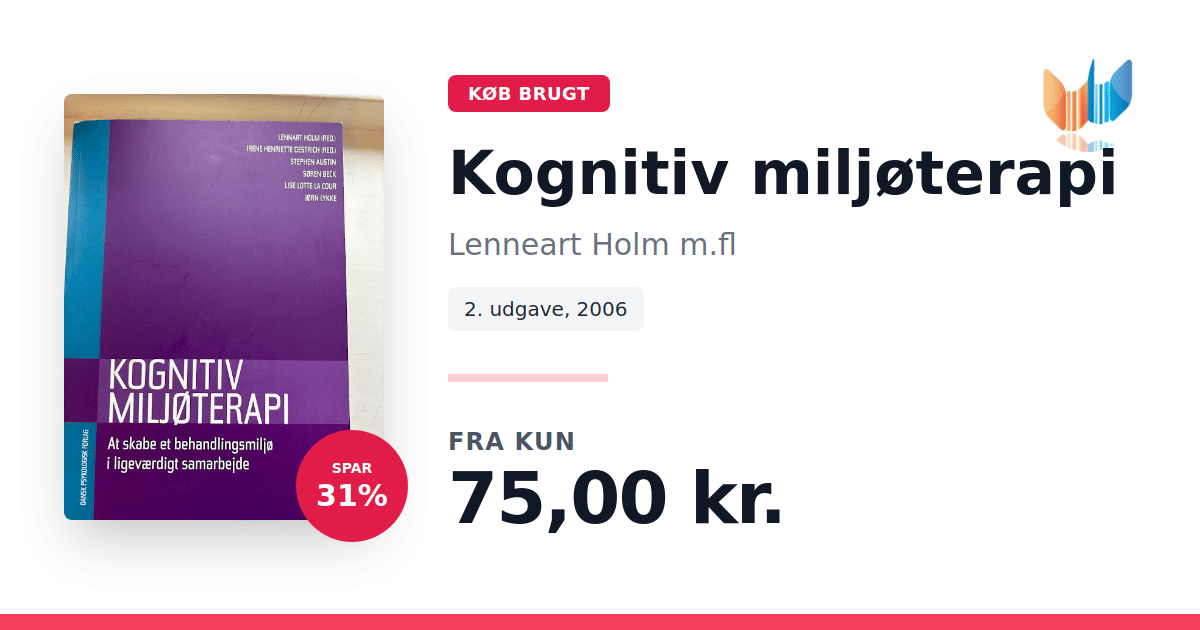 Denne manual til personalet er udarbejdet som supplement til "Kognitiv miljøterapi – At skabe et behandlingsmiljø i et ligeværdigt samarbejde". Manualen præsenterer en overskuelig gennemgang af de centrale kognitive behandlingsprincipper, der understøtter et trygt og balanceret miljø i behandlingssammenhænge. Med en kort og præcis fremstilling af kognitive registreringsskemaer, giver denne vejledning personalet et praktisk redskab til at integrere metoderne i det daglige arbejde. Udgivet i 2006 af Dansk psykologisk Forlag og nu i sin 2. udgave, er manualen designet til at styrke samarbejdet og skabe en helhedsorienteret tilgang inden for kognitiv miljøterapi.