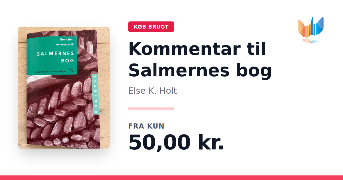 Lige nu kan du købe "Kommentar til Salmernes bog" af Else K. Holt til kun 50,00 kr. Bogen du ser her er brugt, og i god stand. Vi har i øjeblikket kun et enkelt eksemplar til salg af "Kommentar til Salmernes bog", så slå til mens du kan!
