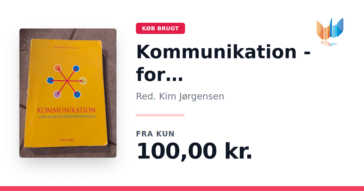 Lige nu kan du købe "Kommunikation - for sundhedsprofessionelle" af Red. Kim Jørgensen til kun 100,00 kr. Bogen du ser her er brugt, og i god stand. Vi har i øjeblikket 5 eksemplarer til salg af "Kommunikation for sundhedsprofessionelle", så husk at se de forskellige udgaver.