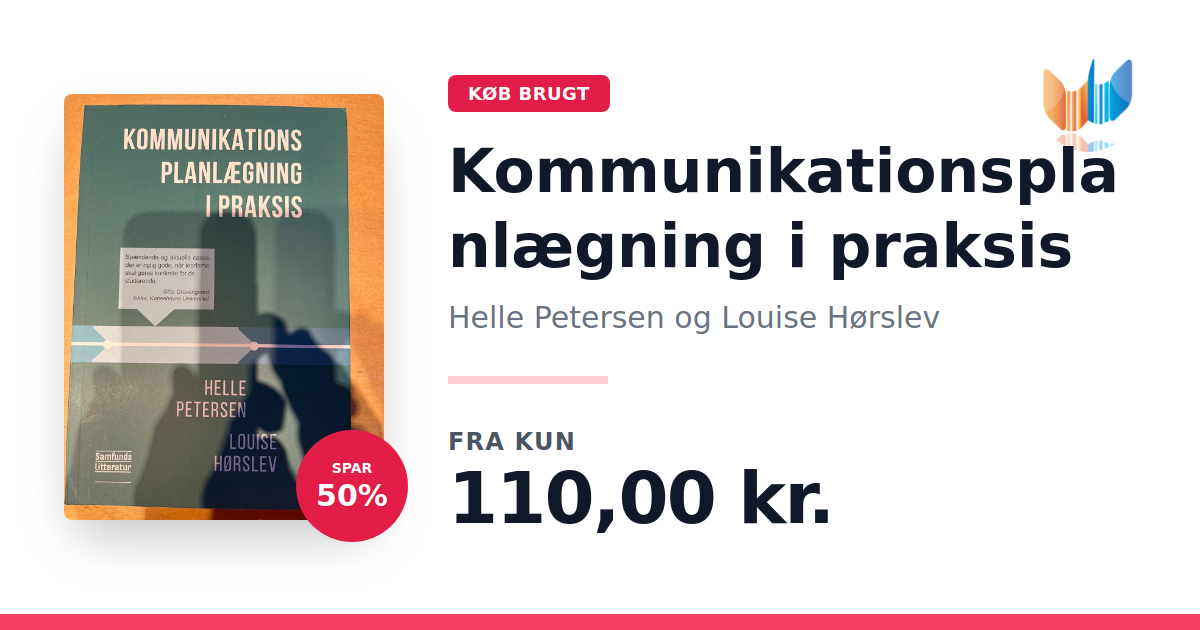 Lige nu kan du købe "Kommunikationsplanlægning i praksis" af Helle Petersen og Louise Hørslev til kun 110,00 kr. Du sparer hele 50% af nyprisen! Bogen du ser her er brugt, og i perfekt stand. Vi har i øjeblikket kun et enkelt eksemplar til salg af "Kommunikationsplanlægning i praksis", så slå til mens du kan!