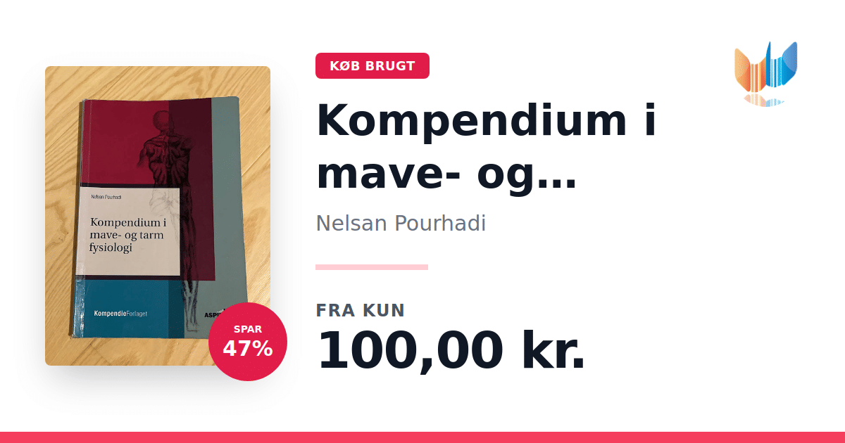 Lige nu kan du købe "Kompendium i mave- og tarmfysiologi" af Nelsan Pourhadi til kun 100,00 kr. Du sparer hele 47% af nyprisen! Bogen du ser her er brugt, og i god stand. Vi har i øjeblikket kun et enkelt eksemplar til salg af "Kompendium i mave- og tarmfysiologi", så slå til mens du kan!