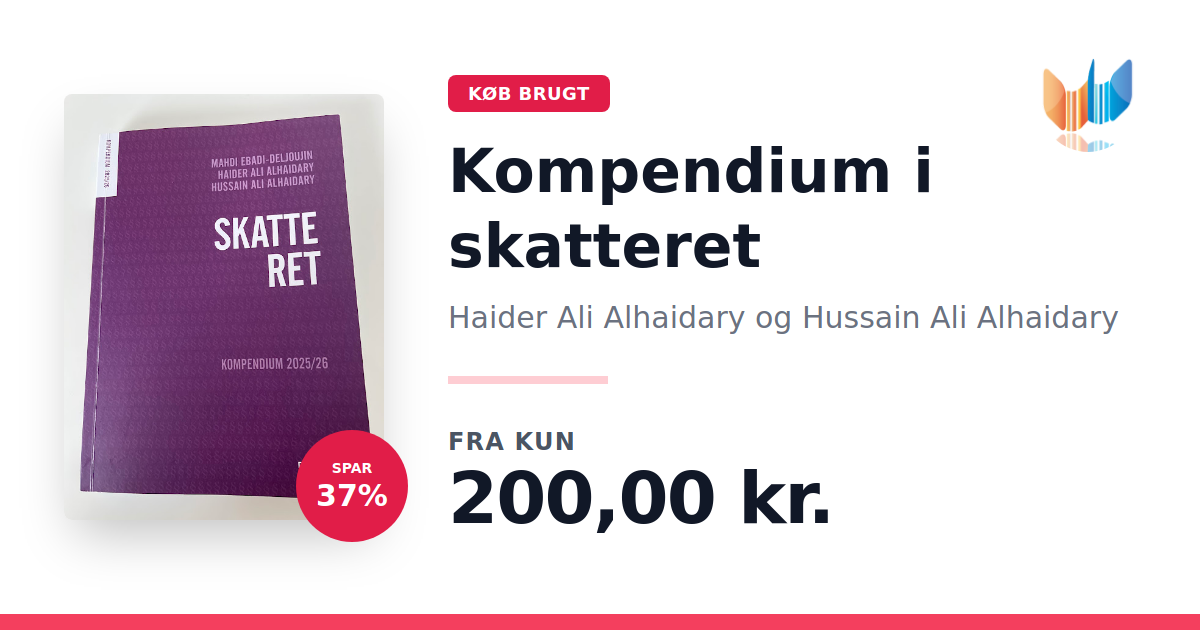 • Kompendium i skatteret, Haider Ali Alhaidary, Hussain Ali Alhaidary, Mahdi Ebadi-Deljoujin, 9788757461275