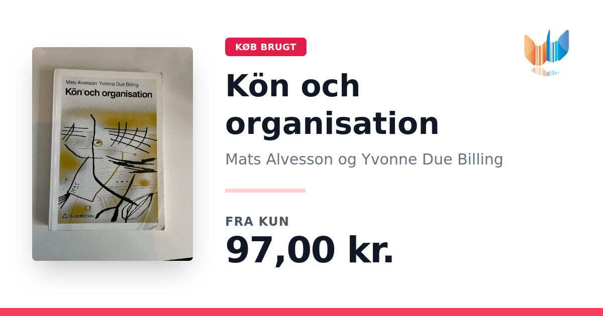 Lige nu kan du købe "Kön och organisation" af Mats Alvesson og Yvonne Due Billing til kun 97,00 kr. Bogen du ser her er brugt, og i god stand. Vi har i øjeblikket kun et enkelt eksemplar til salg af "Kön och organisation", så slå til mens du kan!