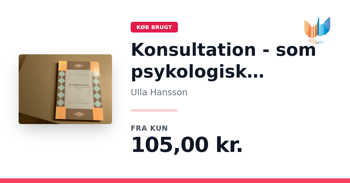 Lige nu kan du købe "Konsultation - som psykologisk metode i skolen" af Ulla Hansson til kun 105,00 kr. Bogen du ser her er brugt, og i god stand. Vi har i øjeblikket kun et enkelt eksemplar til salg af "Konsultation - som psykologisk metode i skolen", så slå til mens du kan!