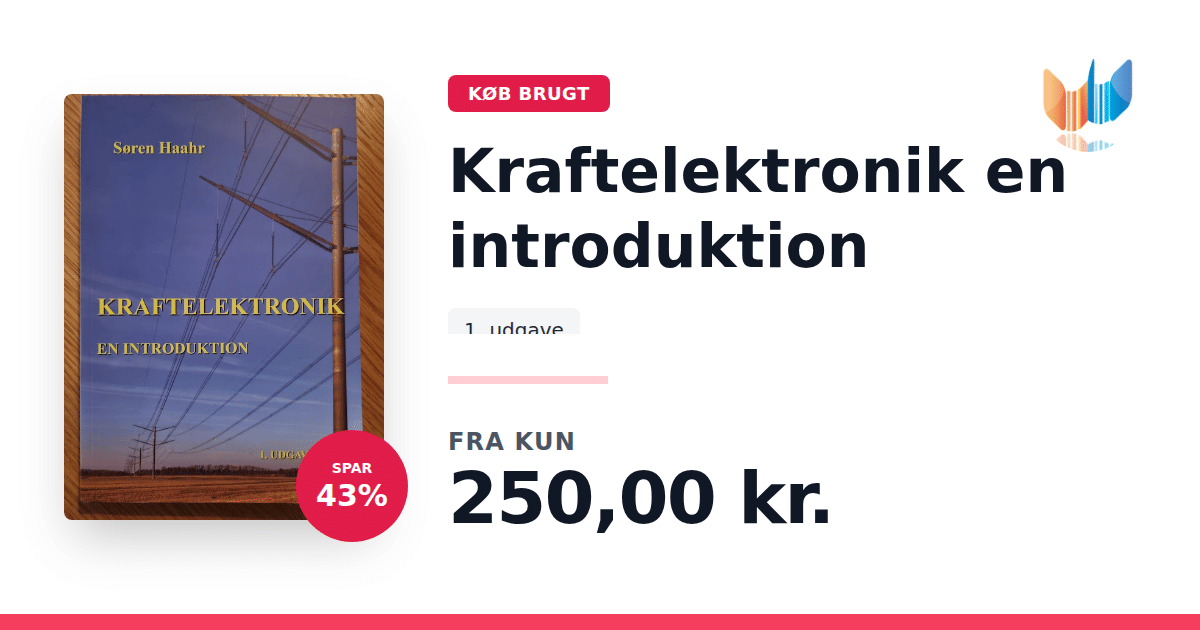 Lige nu kan du købe "Kraftelektronik en introduktion" til kun 250,00 kr. Du sparer hele 43% af nyprisen! Bogen du ser her er brugt, og i perfekt stand. Vi har i øjeblikket kun et enkelt eksemplar til salg af "Kraftelektronik en introduktion", så slå til mens du kan!