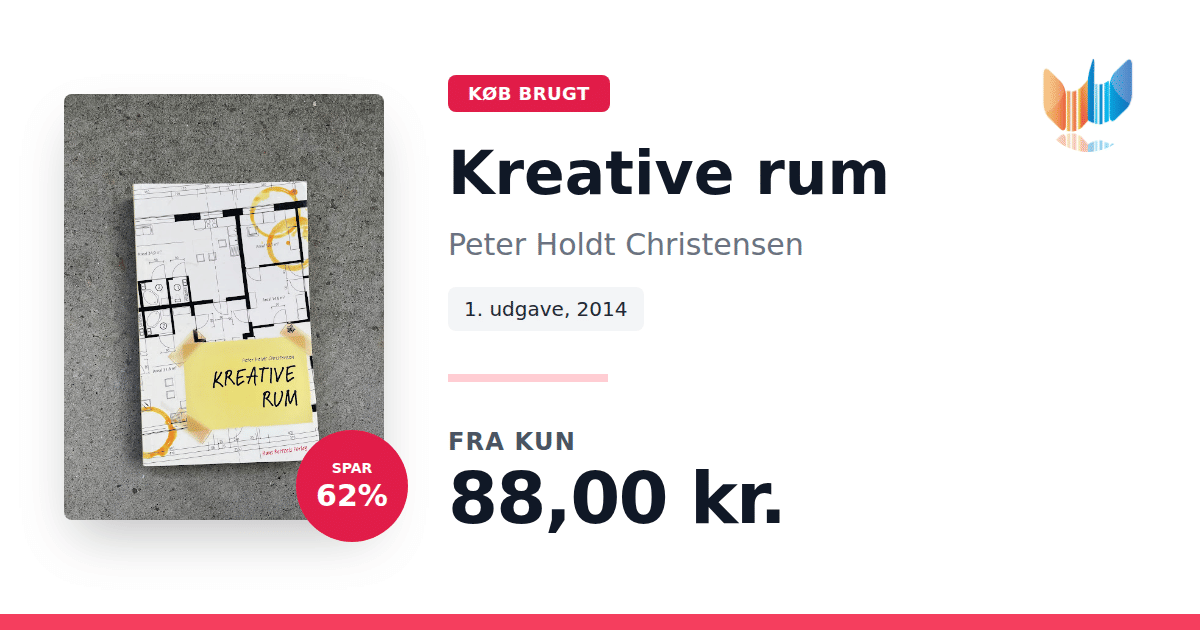 Lige nu kan du købe "Kreative rum" af Peter Holdt Christensen til kun 88,00 kr. Du sparer hele 62% af nyprisen! Bogen du ser her er brugt, og i perfekt stand. Vi har i øjeblikket kun et enkelt eksemplar til salg af "Kreative rum", så slå til mens du kan!