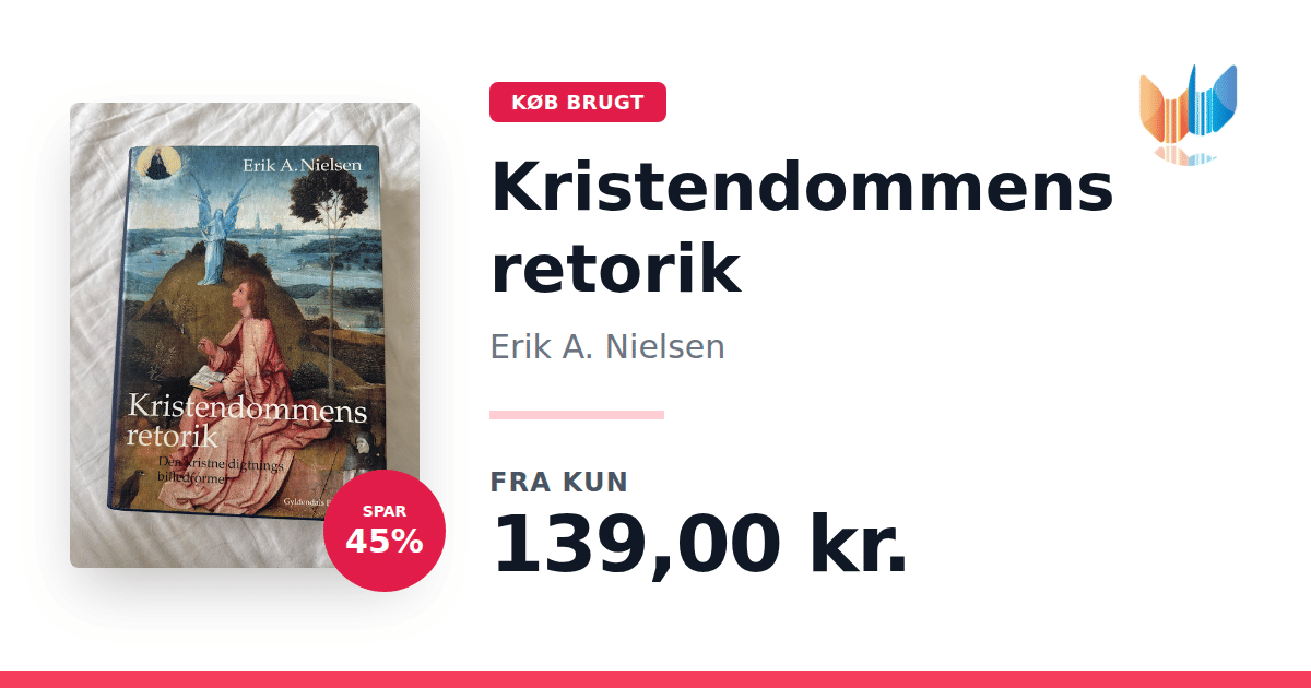 Lige nu kan du købe "Kristendommens retorik" af Erik A. Nielsen til kun 139,00 kr. Du sparer hele 45% af nyprisen! Bogen du ser her er brugt, og i perfekt stand. Vi har i øjeblikket kun et enkelt eksemplar til salg af "Kristendommens retorik", så slå til mens du kan!