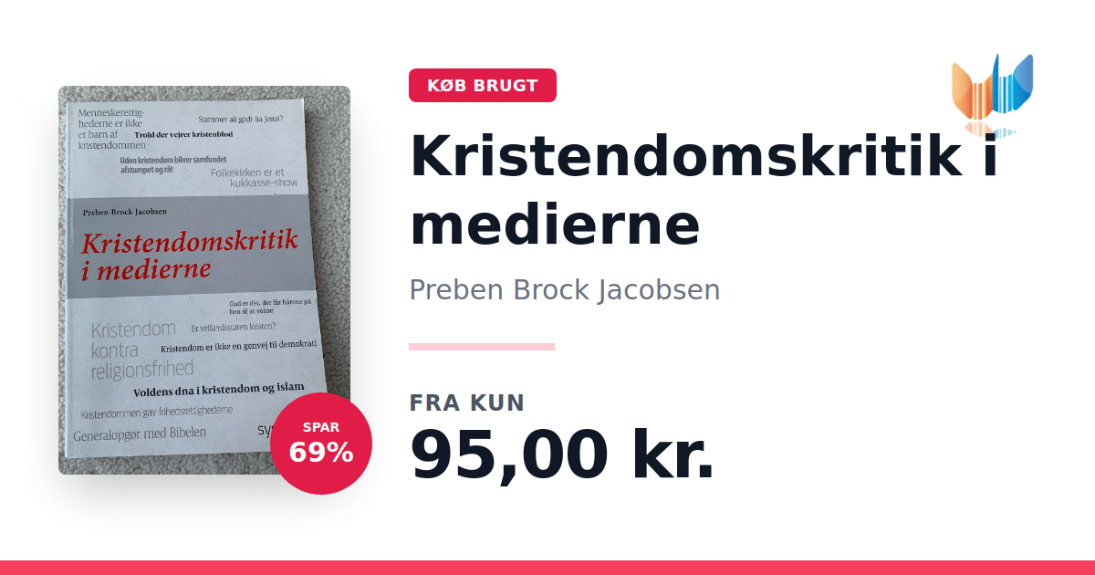 Kristendomskritik i medierne giver en nuanceret gennemgang af 12 centrale positioner i kritikken og forsvaret af kristendommen, set både indefra og udefra. Forfatter Preben Brock Jacobsen præsenterer læseren for en række spændende perspektiver, som sætter fokus på, hvordan kristendommen fremstilles og diskuteres i medierne. Bogen introducerer samtidig to overordnede metodiske tilgange – kvalitative og kvantitative metoder – og inddrager diskurs- og argumentationsanalyse som redskaber i arbejdet med mediers repræsentation af kristendommen. Inspirerende elevaktiverende opgaver, der er kategoriseret efter sværhedsgrad, understøtter en differentieret tilgang til læring, der gør bogen velegnet til både C- og B-niveau i religionsundervisningen, enten som et selvstændigt emne eller som overbygning på et kristendomsforløb. Med sit fokus på kritisk analyse og metodiske redskaber tilbyder Kristendomskritik i medierne et solidt fagligt grundlag, der også kan anvendes tværfagligt, eksempelvis i samspil med dansk og samfundsfag.