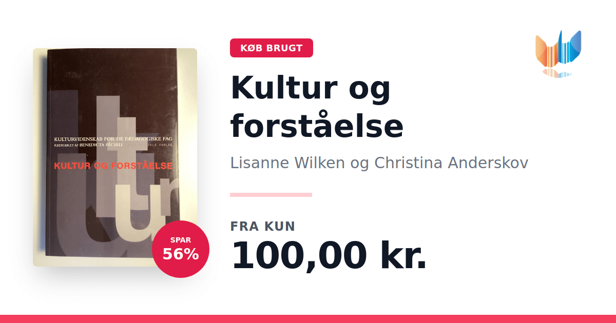 Lige nu kan du købe "Kultur og forståelse" af Lisanne Wilken og Christina Anderskov til kun 100,00 kr. Du sparer hele 56% af nyprisen! Bogen du ser her er brugt, og i perfekt stand. Vi har i øjeblikket kun et enkelt eksemplar til salg af "Kultur og forståelse", så slå til mens du kan!