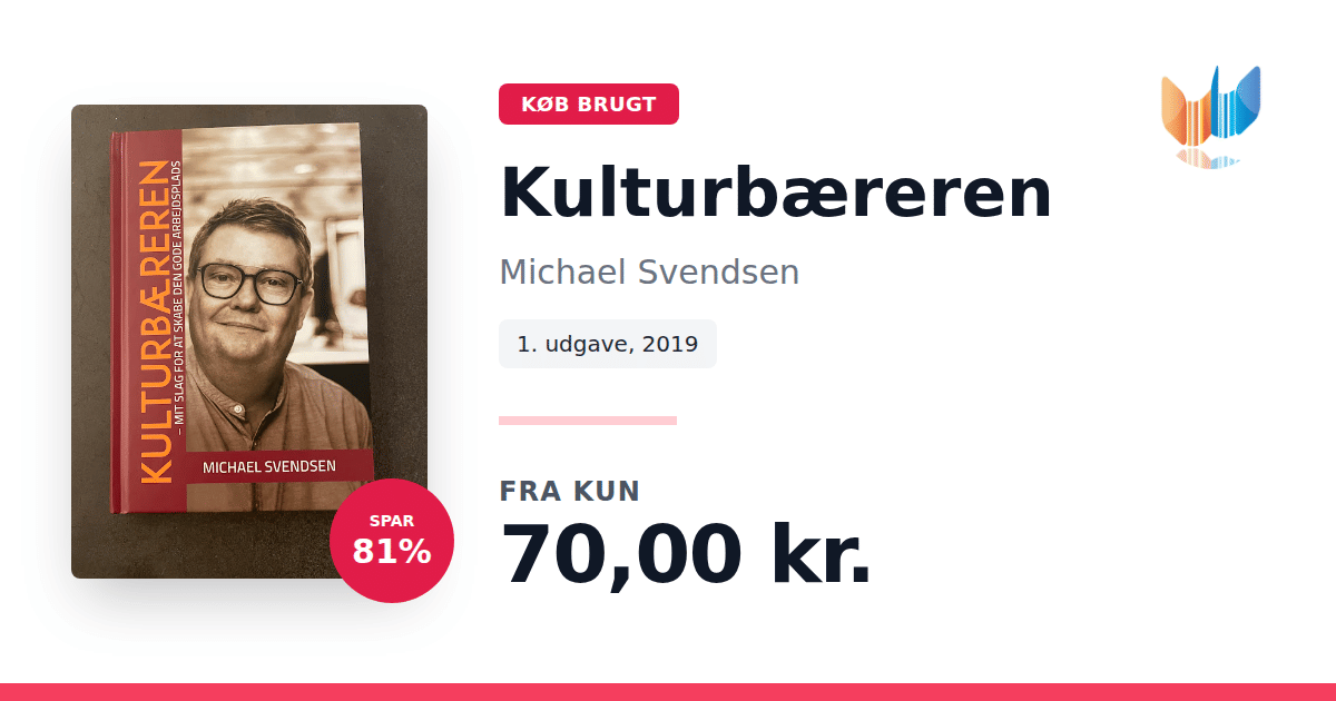 Lige nu kan du købe "Kulturbæreren" af Michael Svendsen til kun 70,00 kr. Du sparer hele 81% af nyprisen! Bogen du ser her er brugt, og i perfekt stand. Vi har i øjeblikket kun et enkelt eksemplar til salg af "Kulturbæreren", så slå til mens du kan!