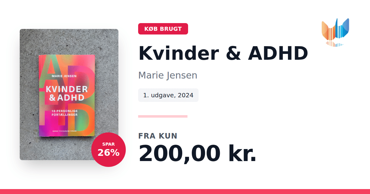 Lige nu kan du købe "Kvinder & ADHD" af Marie Jensen til kun 200,00 kr. Du sparer hele 26% af nyprisen! Bogen du ser her er brugt, og i perfekt stand. Vi har i øjeblikket kun et enkelt eksemplar til salg af "Kvinder & ADHD", så slå til mens du kan!
