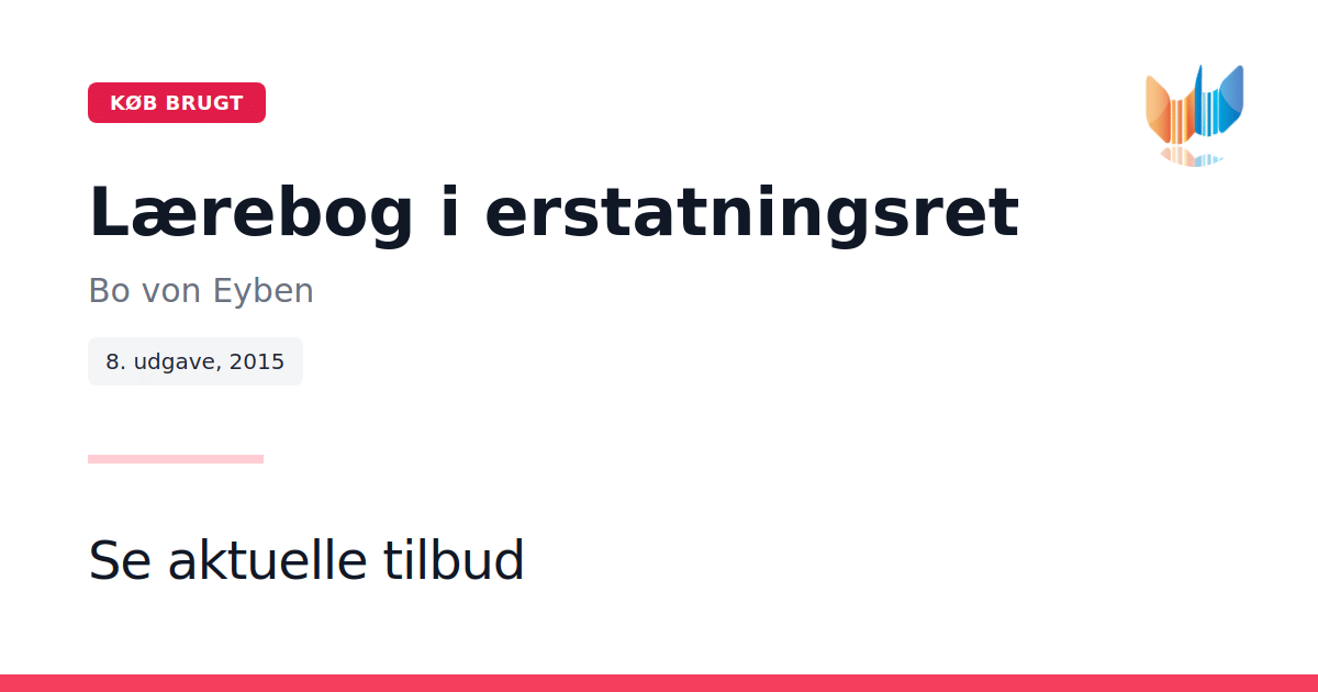 Opdateret i henhold til gældende retspraksis, lovgivning og litteratur, giver Lærebog i erstatningsret en grundig indføring i erstatningsrettens principper. Bo von Eyben præsenterer et indsigtsfuldt værk målrettet både jurastuderende og praktikere, som på en klar og systematisk måde belyser de væsentligste aspekter af erstatningsretten. Bogen formidler en detaljeret gennemgang af emner såsom culpa, objektivt ansvar samt erstatningsansvar i forbindelse med blandt andet motorkøretøjer og miljøskader. Med sin omfattende kapitelstruktur og ryddelige inddeling giver den læseren et solidt grundlag for videre studier og praktisk anvendelse. Udgaven fra 2015, som markerer den ottende udgave, sikrer, at indholdet er tidssvarende og afspejler den nuværende lovgivningsmæssige praksis.