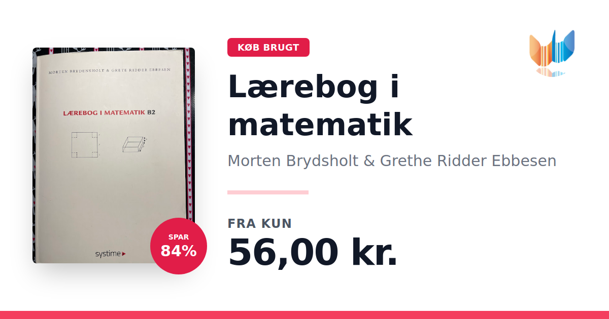 Lige nu kan du købe "Lærebog i matematik" af Morten Brydsholt & Grethe Ridder Ebbesen til kun 56,00 kr. Du sparer hele 84% af nyprisen! Bogen du ser her er brugt, og i perfekt stand. Vi har i øjeblikket 2 eksemplarer til salg af "Lærebog i matematik", så husk at se de forskellige udgaver.