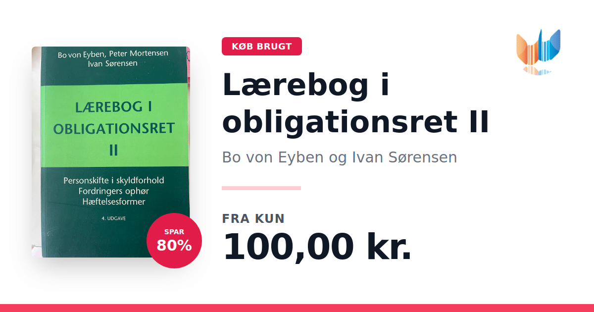 Lige nu kan du købe "Lærebog i obligationsret II" af Bo von Eyben og Ivan Sørensen til kun 100,00 kr. Du sparer hele 80% af nyprisen! Bogen du ser her er brugt, og i god stand. Vi har i øjeblikket 4 eksemplarer til salg af "Lærebog i obligationsret II", så husk at se de forskellige udgaver.