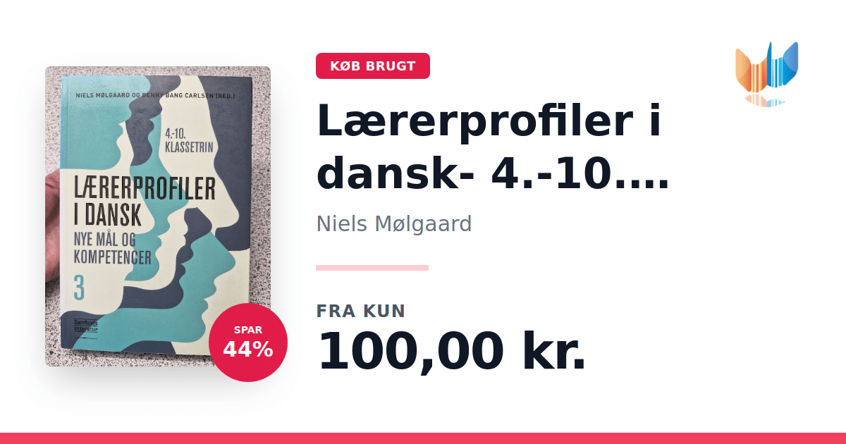 Lige nu kan du købe "Lærerprofiler i dansk- 4.-10. klassetrin" af Niels Mølgaard til kun 100,00 kr. Du sparer hele 44% af nyprisen! Bogen du ser her er brugt, og i perfekt stand. Vi har i øjeblikket kun et enkelt eksemplar til salg af "Lærerprofiler i dansk- 4.-10. klassetrin", så slå til mens du kan!