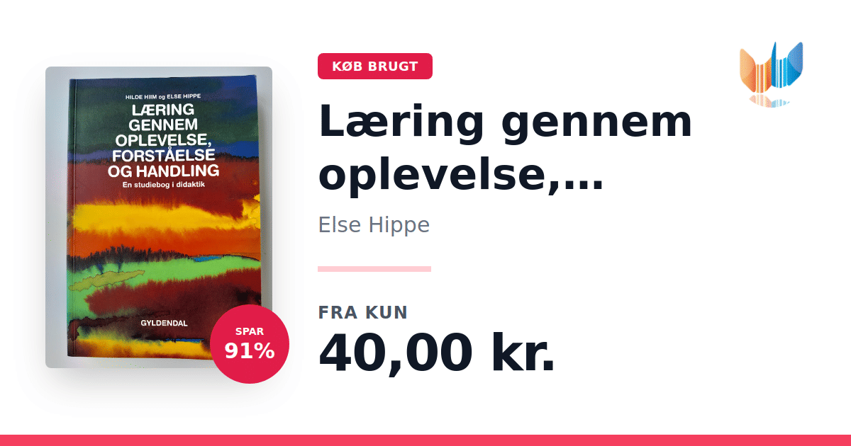 Lige nu kan du købe "Læring gennem oplevelse, forståelse og handling" af Else Hippe til kun 40,00 kr. Du sparer hele 91% af nyprisen! Bogen du ser her er brugt, og i god stand. Vi har i øjeblikket 6 eksemplarer til salg af "Læring gennem oplevelse, forståelse og handling", så husk at se de forskellige udgaver.