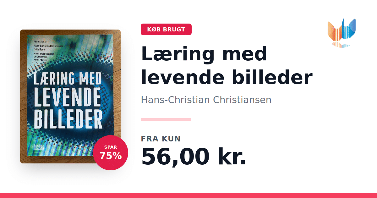Lige nu kan du købe "Læring med levende billeder" af Hans-Christian Christiansen til kun 56,00 kr. Du sparer hele 75% af nyprisen! Bogen du ser her er brugt, og i perfekt stand. Vi har i øjeblikket kun et enkelt eksemplar til salg af "Læring med levende billeder", så slå til mens du kan!