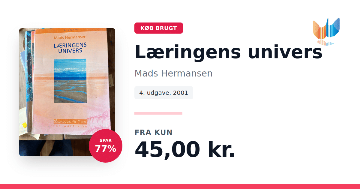 Lige nu kan du købe "Læringens univers" af Mads Hermansen til kun 45,00 kr. Du sparer hele 77% af nyprisen! Bogen du ser her er brugt, og i god stand. Vi har i øjeblikket 4 eksemplarer til salg af "Læringens univers", så husk at se de forskellige udgaver.
