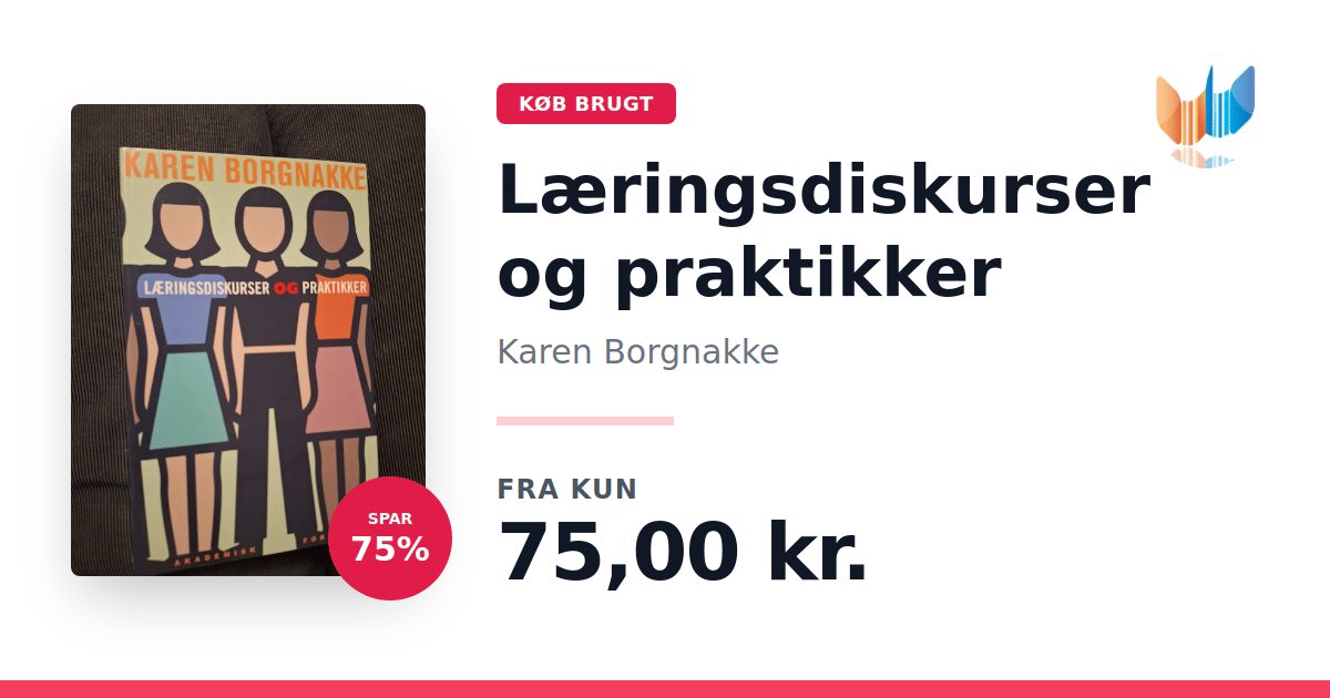 Lige nu kan du købe "Læringsdiskurser og praktikker" af Karen Borgnakke til kun 75,00 kr. Du sparer hele 75% af nyprisen! Bogen du ser her er brugt, og i perfekt stand. Vi har i øjeblikket kun et enkelt eksemplar til salg af "Læringsdiskurser og praktikker", så slå til mens du kan!