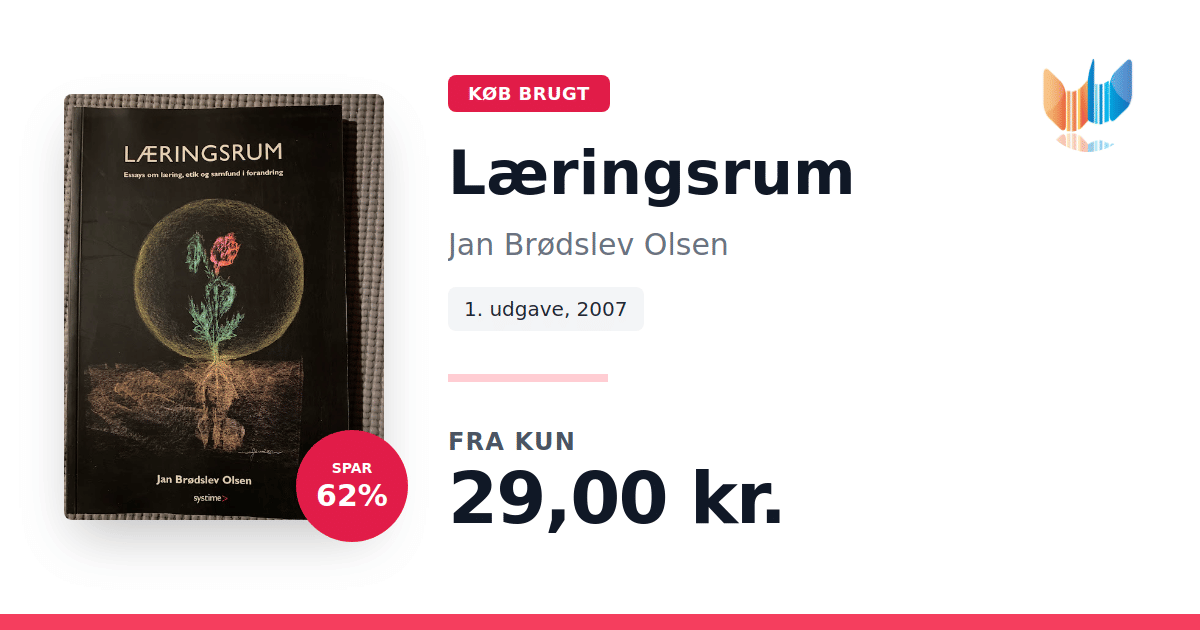 Lige nu kan du købe "Læringsrum" af Jan Brødslev Olsen til kun 29,00 kr. Du sparer hele 62% af nyprisen! Bogen du ser her er brugt, og i god stand. Vi har i øjeblikket kun et enkelt eksemplar til salg af "Læringsrum", så slå til mens du kan!