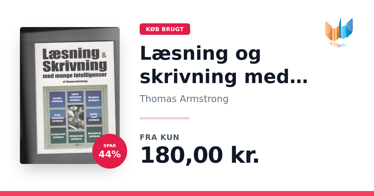 Lige nu kan du købe "Læsning og skrivning med mange intelligenser" af Thomas Armstrong til kun 180,00 kr. Du sparer hele 44% af nyprisen! Bogen du ser her er brugt, og i perfekt stand. Vi har i øjeblikket kun et enkelt eksemplar til salg af "Læsning og skrivning med mange intelligenser", så slå til mens du kan!