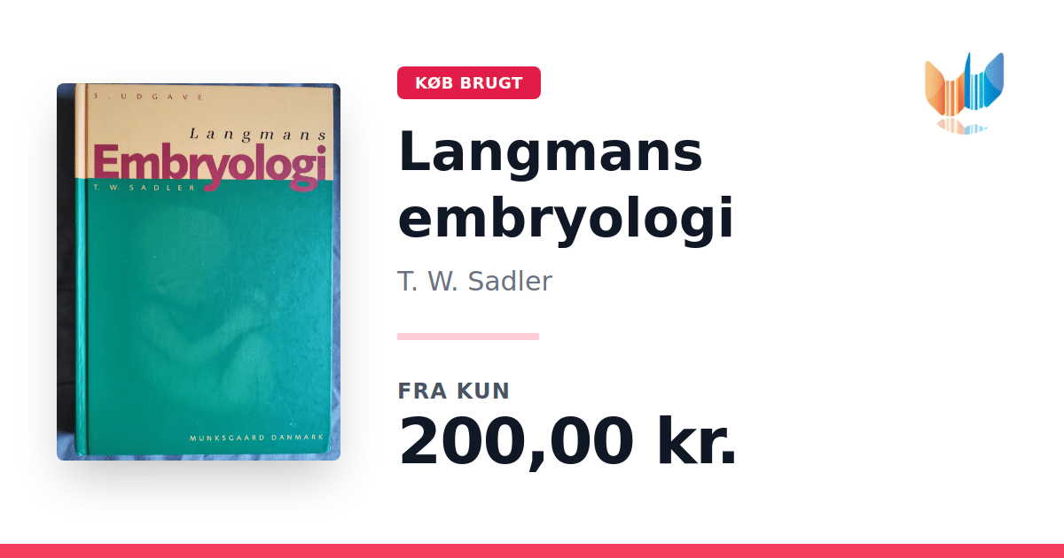 Lige nu kan du købe "Langmans embryologi" af T. W. Sadler til kun 200,00 kr. Bogen du ser her er brugt, og i perfekt stand. Vi har i øjeblikket 6 eksemplarer til salg af "Langmans embryologi", så husk at se de forskellige udgaver.