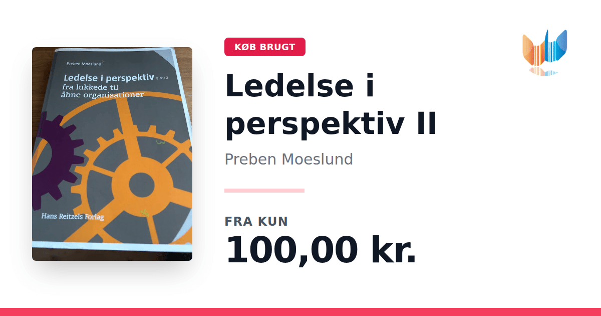 Lige nu kan du købe "Ledelse i perspektiv II" af Preben Moeslund til kun 100,00 kr. Bogen du ser her er brugt, og i god stand. Vi har i øjeblikket 3 eksemplarer til salg af "Ledelse i perspektiv II", så husk at se de forskellige udgaver.