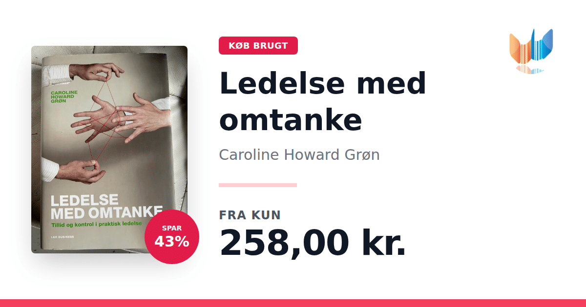 Lige nu kan du købe "Ledelse med omtanke" af Caroline Howard Grøn til kun 258,00 kr. Du sparer hele 43% af nyprisen! Bogen du ser her er brugt, og i perfekt stand. Vi har i øjeblikket kun et enkelt eksemplar til salg af "Ledelse med omtanke", så slå til mens du kan!