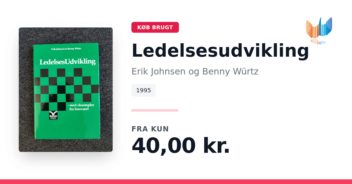 Lige nu kan du købe "Ledelsesudvikling" af Erik Johnsen og Benny Würtz til kun 40,00 kr. Bogen du ser her er brugt, og i god stand. Vi har i øjeblikket kun et enkelt eksemplar til salg af "Ledelsesudvikling", så slå til mens du kan!
