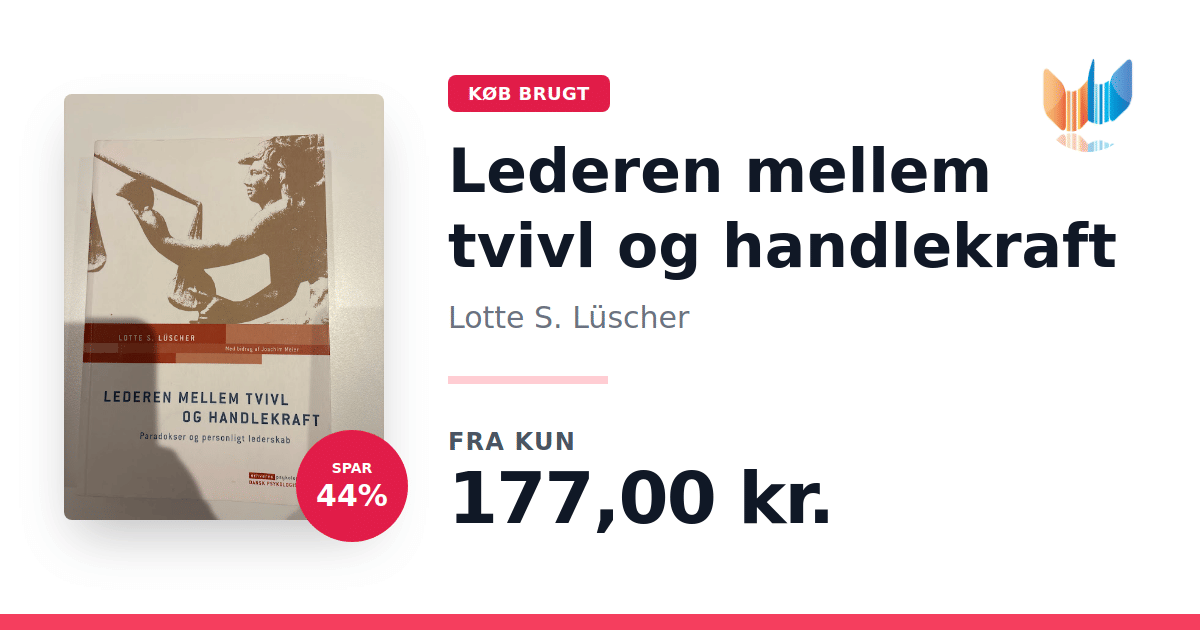 Lige nu kan du købe "Lederen mellem tvivl og handlekraft" af Lotte S. Lüscher til kun 177,00 kr. Du sparer hele 44% af nyprisen! Bogen du ser her er brugt, og i perfekt stand. Vi har i øjeblikket 2 eksemplarer til salg af "Lederen mellem tvivl og handlekraft", så husk at se de forskellige udgaver.