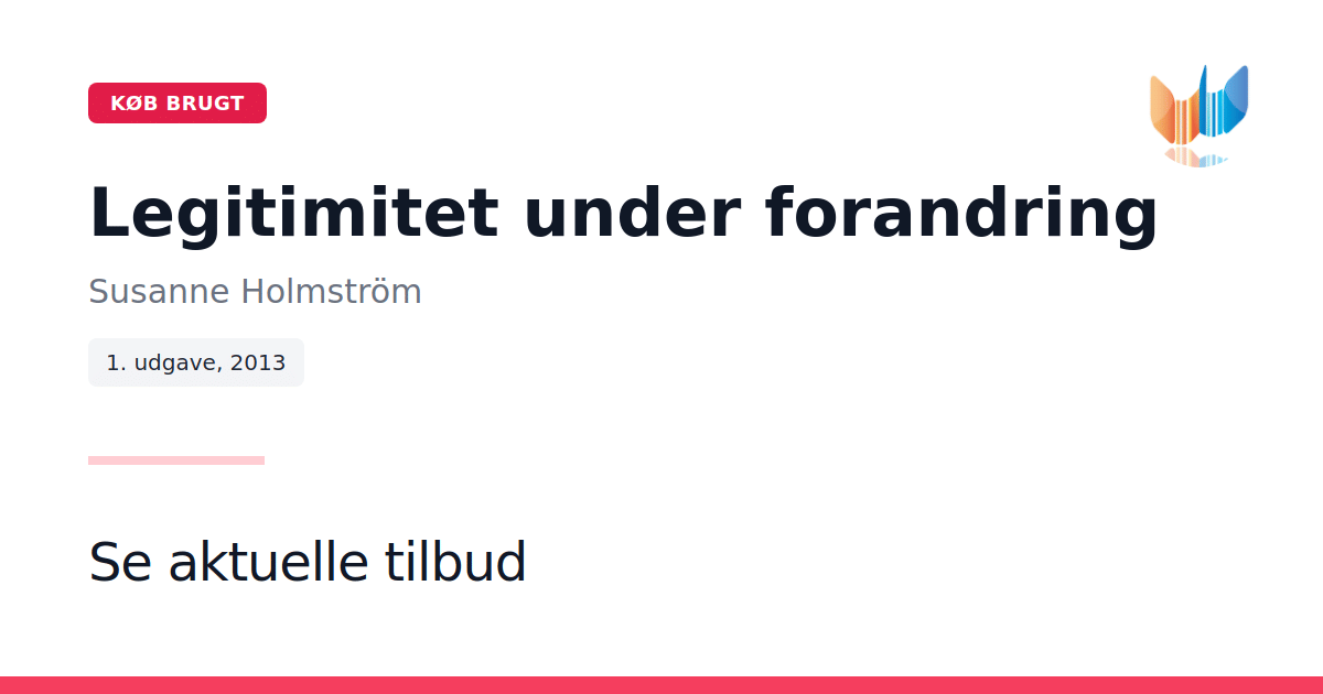I Legitimitet under forandring udforsker Susanne Holmström de skiftende betingelser for virksomheders legitimitet i et samfund, hvor de traditionelle normer og den centrale lovgivningsmæssige regulering ikke længere er den sikre vej. Bogen beskriver overgangen fra en æra, hvor fælles normer og kontrol udgjorde fundamentet for virksomheders anerkendelse, til en tid, hvor virksomheder konstant må berettige sig i et landskab præget af flydende og flertydige normer. Med fokus på de kommunikative praksisser, der i dag er afgørende for at tilpasse sig et dynamisk og mangfoldigt samfund, viser Holmström, hvordan den moderne legitimeringsproces har øget kompleksiteten i forholdet mellem virksomhed og omverden. Bogen giver dermed læseren en analytisk indsigt i, hvordan nutidens organisationer navigerer i en verden med stadigt skiftende forventninger og krav.