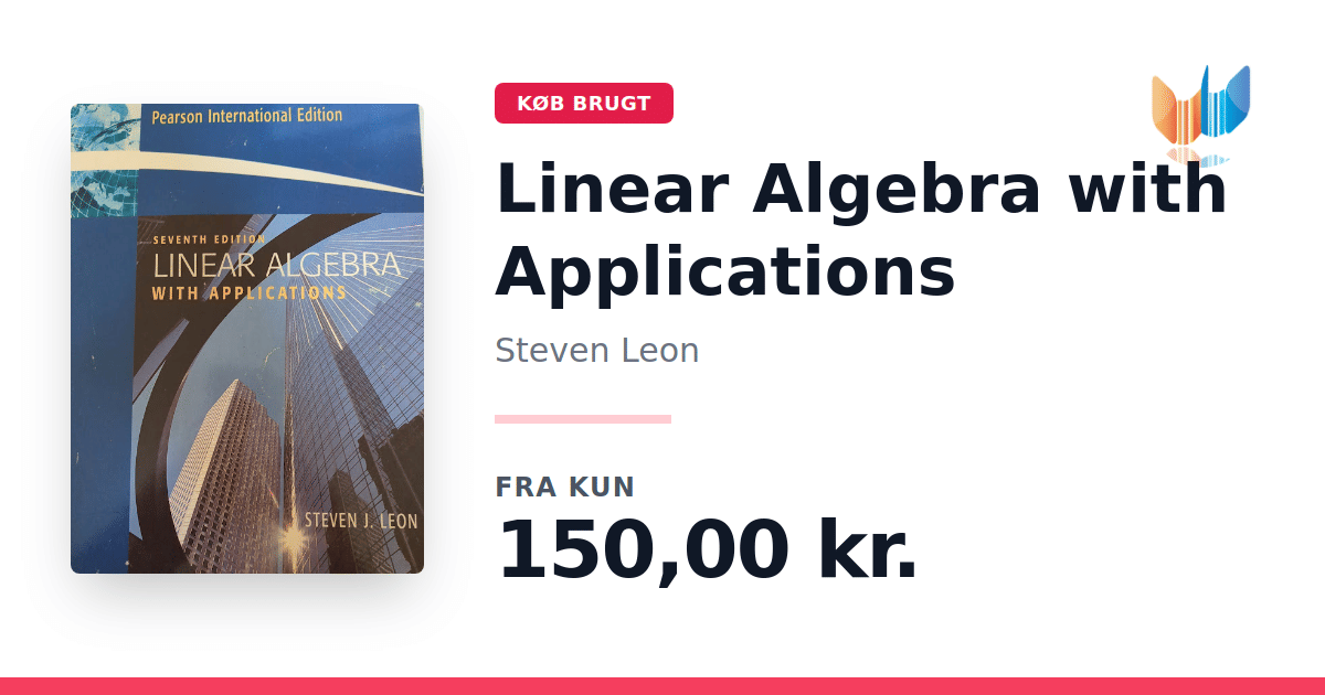 Lige nu kan du købe "Linear Algebra with Applications" af Steven Leon til kun 150,00 kr. Bogen du ser her er brugt, og i god stand. Vi har i øjeblikket 3 eksemplarer til salg af "Linear Algebra with Applications", så husk at se de forskellige udgaver.