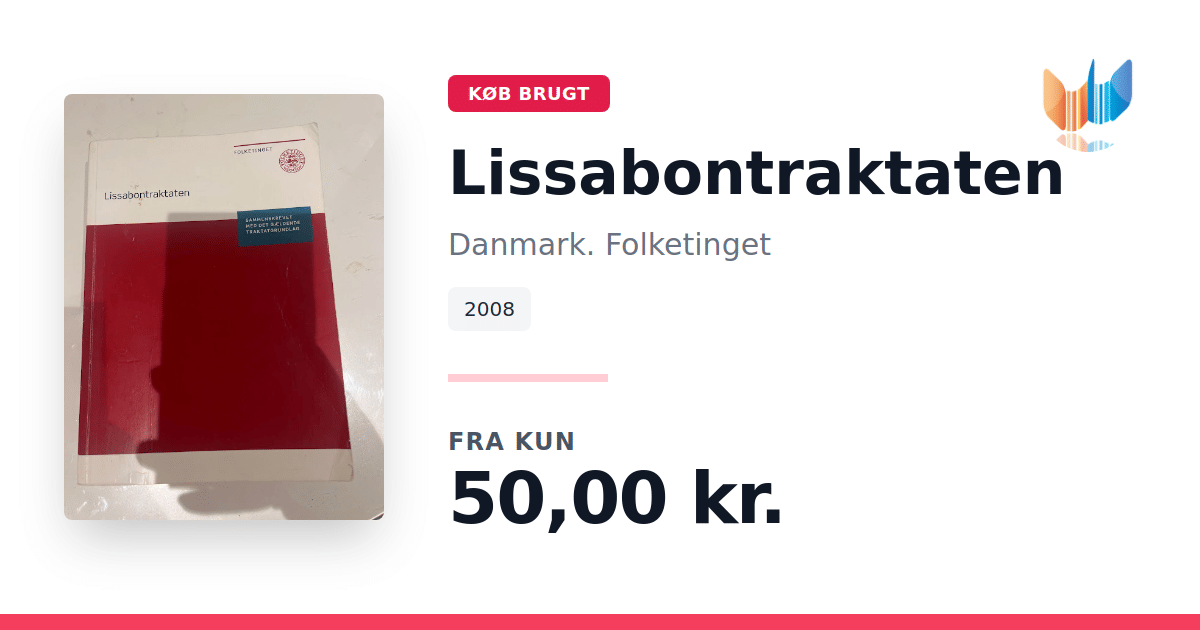 Lige nu kan du købe "Lissabontraktaten" af Danmark. Folketinget til kun 50,00 kr. Bogen du ser her er brugt, og i god stand. Vi har i øjeblikket kun et enkelt eksemplar til salg af "Lissabontraktaten", så slå til mens du kan!