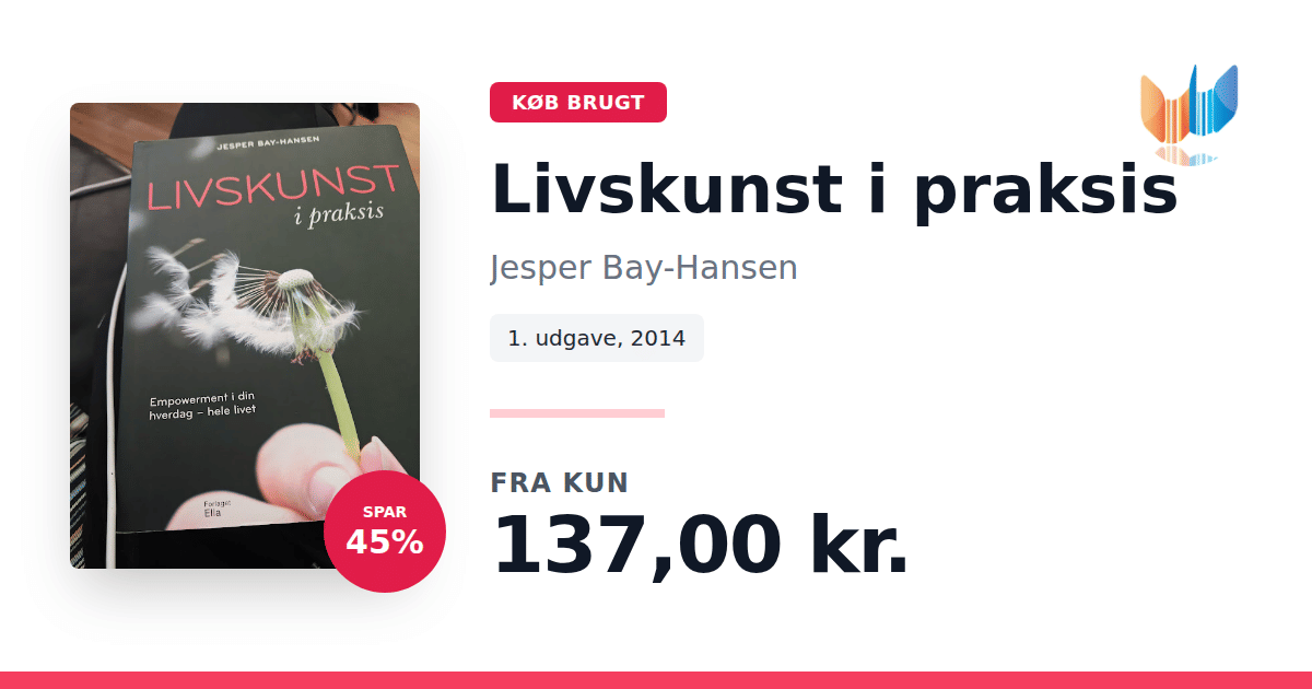 Lige nu kan du købe "Livskunst i praksis" af Jesper Bay-Hansen til kun 137,00 kr. Du sparer hele 45% af nyprisen! Bogen du ser her er brugt, og i perfekt stand. Vi har i øjeblikket kun et enkelt eksemplar til salg af "Livskunst i praksis", så slå til mens du kan!