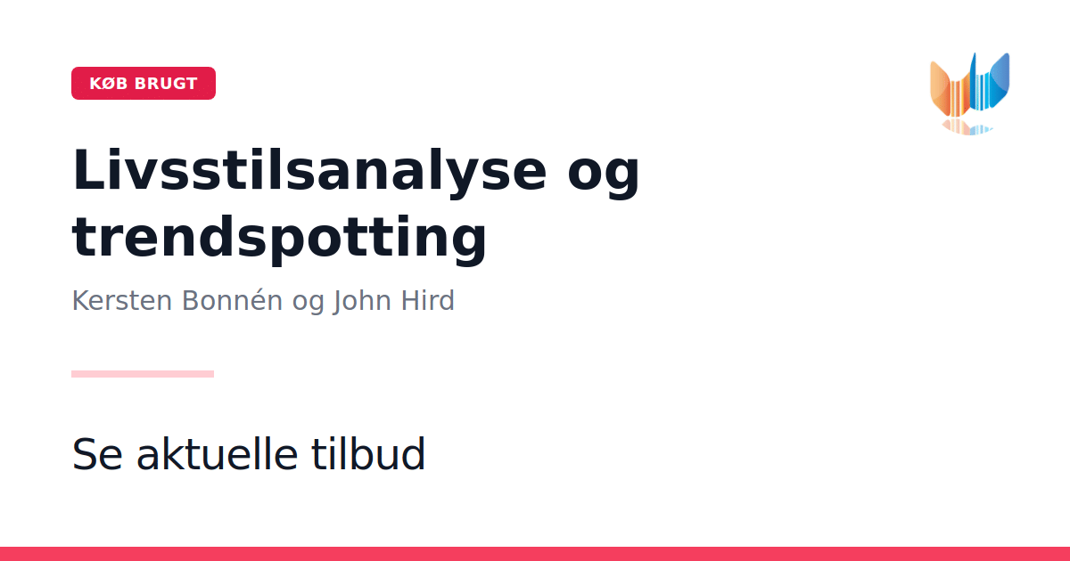 I Livsstilsanalyse og trendspotting præsenterer Kersten Bonnén, John Hird og Kirsten Poulsen centrale metoder inden for moderne markedsanalyse med fokus på livsstilsanalyse, psychographics og værdibaseret segmentering. Bogen undersøger, hvordan disse begreber kan bidrage til at forstå og forudsige forbrugernes ofte uforudsigelige adfærd ved hjælp af trendspotting som et redskab. Gennem en systematisk og metodisk tilgang belyser forfatterne den tætte forbindelse mellem teori og praksis inden for afsætningsøkonomi. Bogen giver læseren en solid forståelse af, hvordan observation og analyse af markedstendenser kan anvendes i det praktiske arbejde med at udvikle og tilpasse strategier på et dynamisk marked.