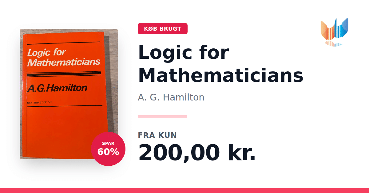 Lige nu kan du købe "Logic for Mathematicians" af A. G. Hamilton til kun 200,00 kr. Du sparer hele 60% af nyprisen! Bogen du ser her er brugt, og i god stand. Vi har i øjeblikket kun et enkelt eksemplar til salg af "Logic for Mathematicians", så slå til mens du kan!