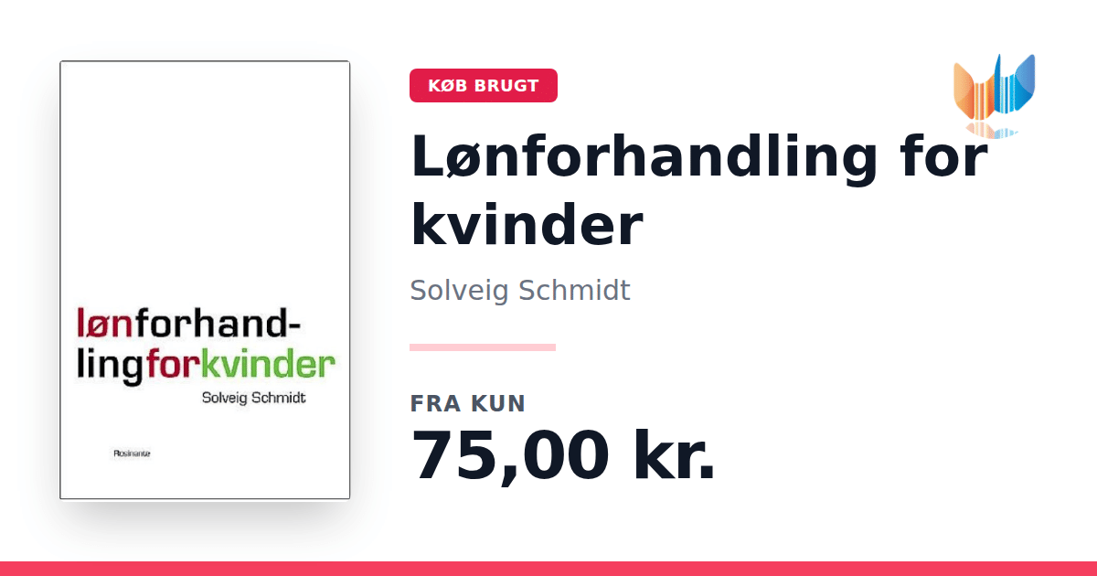 Lige nu kan du købe "Lønforhandling for kvinder" af Solveig Schmidt til kun 75,00 kr. Bogen du ser her er brugt, og i perfekt stand. Vi har i øjeblikket kun et enkelt eksemplar til salg af "Lønforhandling for kvinder", så slå til mens du kan!
