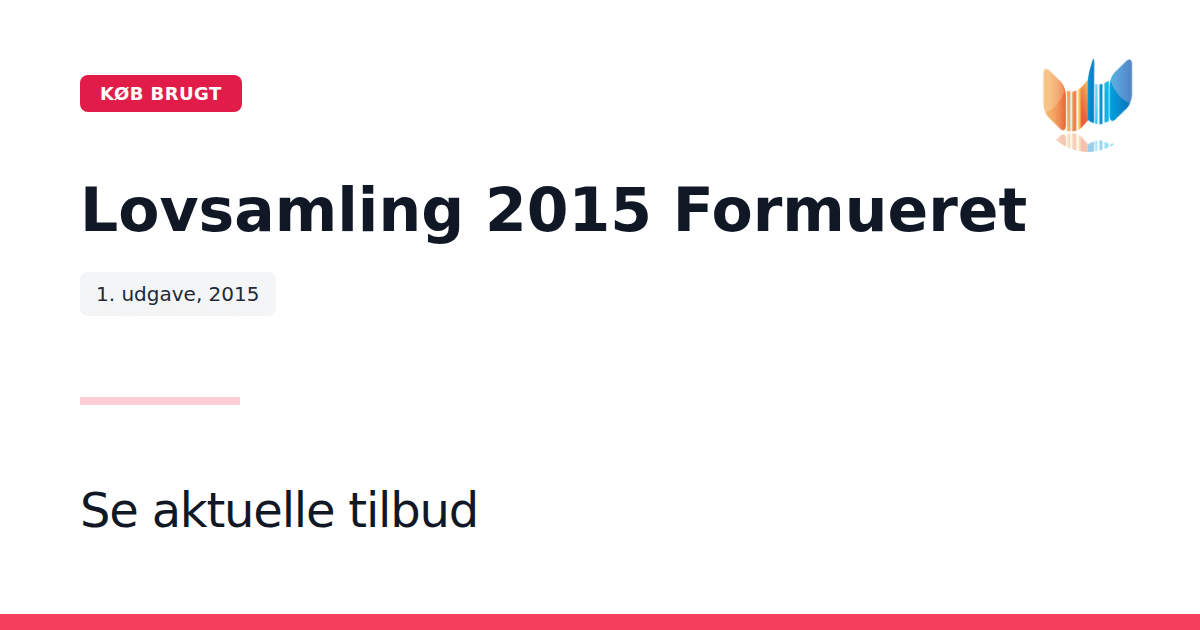 Lovsamling formueret er omhyggeligt sammensat til at understøtte de formueretlige fag på både bachelor- og kandidatniveau på jurastudiet. Indholdet er udvalgt med fokus på de studerendes behov for en opdateret regelsamling, der både er anvendelig i undervisningssammenhænge og ved eksamensforberedelser. Lovene i samlingen fremgår i alfabetisk rækkefølge efter, hvad de almindeligvis kaldes i daglig tale, og er ajourført pr. 1. juli 2015. Bestemmelser, som forventes at træde i kraft senere, er medtaget og tydeligt markeret som kommende ændringer, mens ikrafttrædelsesbestemmelser er indarbejdet i begrænset omfang. Denne udgave af lovsamlingen indgår i serien Lovsamlinger 2015, der tilbyder en række relevante og opdaterede oversigter over gældende lovgivning, specielt tilpasset de studerende og praktikere inden for formueret. Med sit klare layout og systematiske opbygning fremstår denne samling som et uundværligt redskab for dem, der ønsker at få et solidt overblik over emnet.